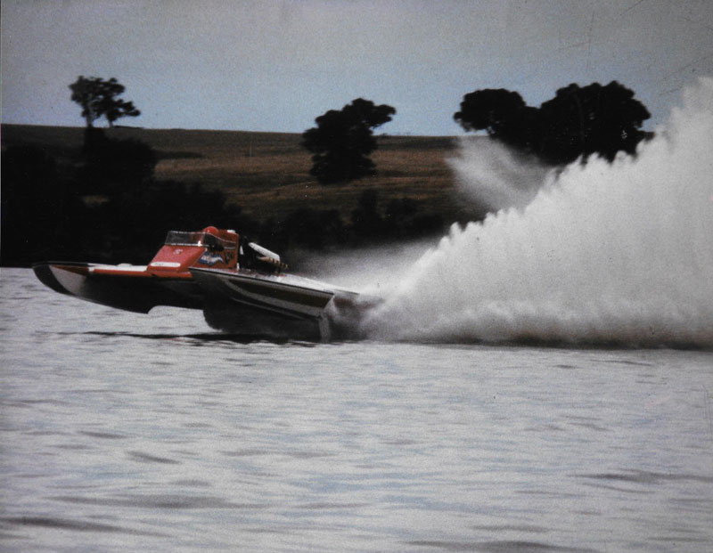 In 1972 the old STAMPEDE had run its race, it was discarded and a new boat was built. This was a 30ft Hydro constructed of plywood and aluminium powered by a Rolls Royce Merlin engine, Co Winton was engaged by Stan and myself to oversee the construction and design of the hull. There were many other guys involved during this construction period, just to name some; Johnny Wellwood, Bob Jackson, Bob Saniga, Clem Anderson, John Allison, Max Lamb and Brett Martin , Ben Fox, (apologies to anyone I have missed).